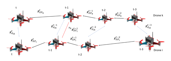与此同时,学术界也在探索新的技术架构,试图让无人机集群变得更灵活,从而减少更多依赖条件并提高对意外灾害的抵抗能力。这些努力都围着绕一个核心进行,即分布式架构。例如,研究人员通过视觉SLAM结合UWB测据的方式在某些系统中剥离了GPS系统,让无人机集群在没有GPS信号的室内也能知道自己和彼此的位置,从而降低RTK-GPS地面站异常可能导致的集群失控风险。