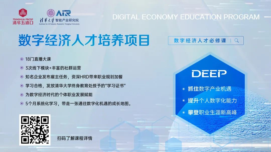 (AIR)向同学们致以真挚的欢迎和祝愿:“AIR是一家面向第四次工业革命的国际化、智能化、产业化的研究机构,学院对「数字经济人才培养项目」非常重视,共有11位教授、科学家、学者来参与授课,我们非常希望以线上+线下混合培养的方式,来帮助更多同学全景式地了解人工智能的技术发展路径、看到数字经济未来的趋势和格局,在未来更好地找到属于你们的投资机遇、发展空间。”