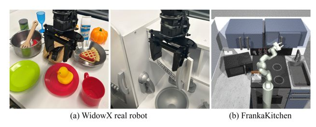AIR与商汤研究院,上海交通大学,香港中文大学MMlab与上海人工智能实验室共同提出全新具身智能通用表征预训练方案,可实现在数据稀缺场景下的高泛化、轻量级具身智能体学习。该方法可使用大量易获取的领域外数据学习视觉序列-语言指令相匹配的通用表征,可跨域零样本泛化到下游机器人控制任务上,在实体机械臂多任务操作测试中达到了较领域内前沿方案两倍的成功率。目前该论文已被ICML 2024接收。