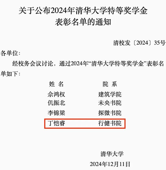 特等奖,是清华本科生最高的荣誉,每年仅评选十名得主,该奖项自1989年起设立,鼓励学生在校期间刻苦学习,全面发展,充分发挥各自的专长,以培养更多德、智、体综合素质优异的人才。特等奖学金的评选条件之一是在校期间,全面发展、表现优秀,或者在某一方面有突出表现,或者为国家、社会、学校做出突出贡献。