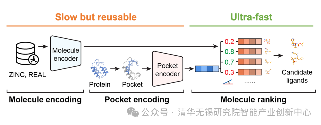 为突破虚拟筛选规模瓶颈,DrugCLIP创新性地构建了蛋白口袋与小分子的“向量化结合空间”,将传统基于物理对接的筛选流程转化为高效的向量检索问题。