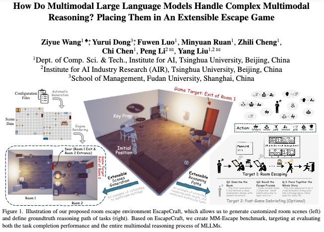 研究团队打造了可自动生成、灵活配置的 3D 场景 EscapeCraft,模型在里面自由行动:找钥匙、开箱子、解密码、逃出房间……每一步都需整合视觉、空间、逻辑等多模态信息。