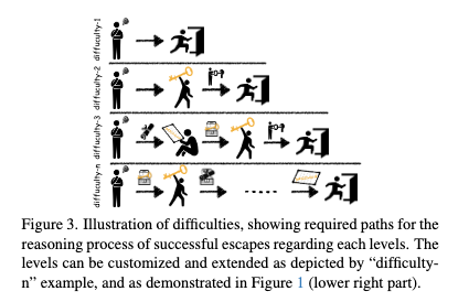 图二:EscapeCraft支持自由订制和扩展想要的难度等级。不同难度等级下所需的逃脱步骤有所不同。