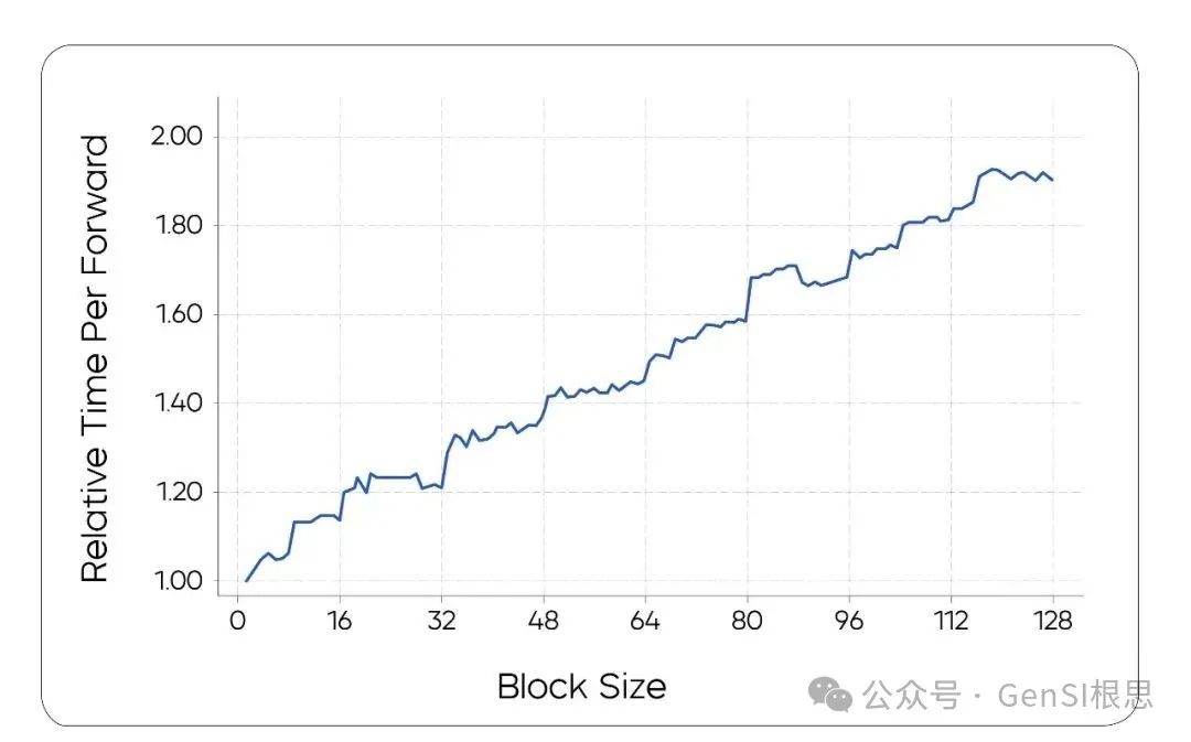 除了算法设计,我们的工作还包括整体性的系统优化,以高效支持块级推理。具体来说,我们利用了内部的基础设施框架,该框架针对扩散采样进行了专门优化以加速生成。不同块大小对性能的影响详见下图。该分析为我们选择最佳块大小提供了依据。