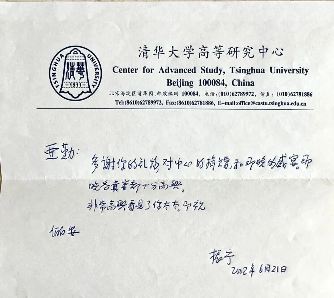 杨先生2002年关于清华高等研究中心的信件