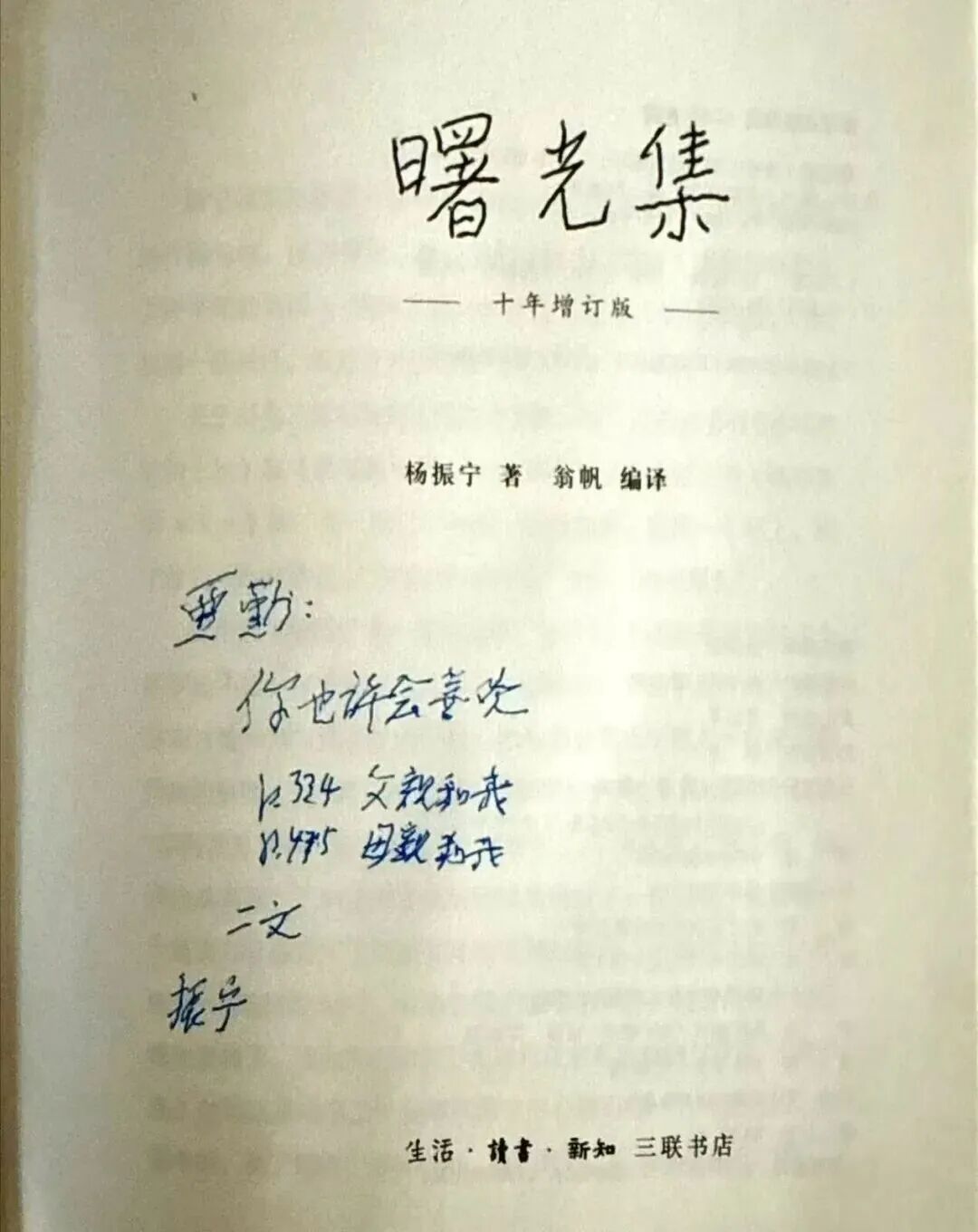 杨先生为人似玉、似浑金璞玉。他格外平易近人,即便已是享誉世界的学者,仍会在学校里给学生们亲自开课。他曾讲过普通物理课程,他的课堂总能跨越学科界限,学物理的、学哲学的、学工程的,听了之后都能从中获得启示,仿佛在不同领域间架起了一座桥梁。大孝尊亲,犹记得三年前我去探望先生,他提起我在书中写过的与我母亲相处的故事,格外动容,也与我分享了在《曙光集》中与父亲母亲的章节。