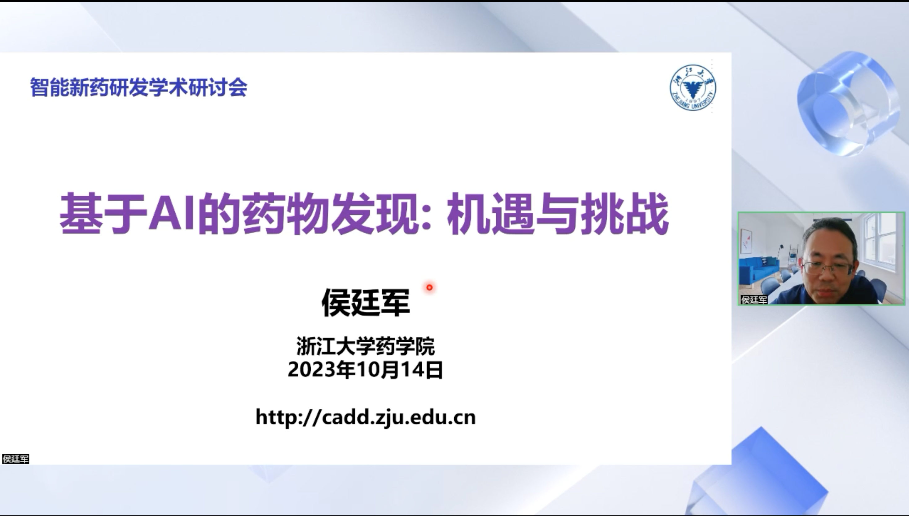 10月14日,第5期AIR学术工作坊第六位报告嘉宾:浙江大学药学院求是特聘教授侯廷军,为我们做了题为《AI药物发现的机遇与挑战》的报告。