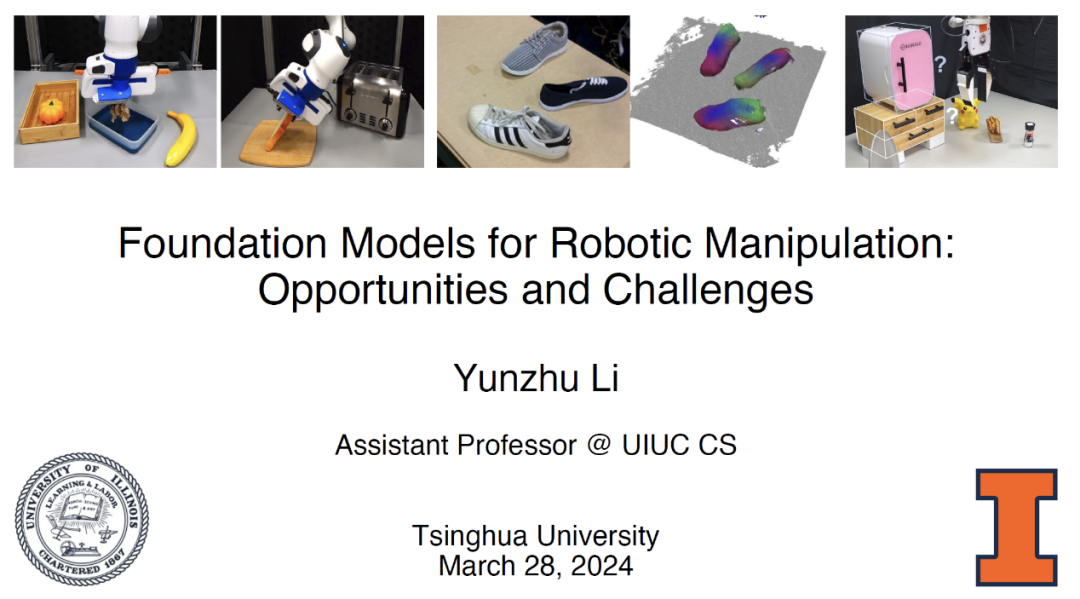 3月28日中午,由DISCOVER实验室主办的第二十九期AIR青年科学家论坛如期举行。本期讲座有幸邀请到伊利诺伊大学香槟分校(UIUC)计算机系助理教授李昀烛,为AIR的老师与同学们做了题为《Foundation Models for Robotic Manipulation: Opportunities and Challenges》的精彩讲座。