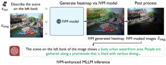 在这篇文章中,课题组考虑将视觉定位和执行下游任务解耦开,利用直接的像素级视觉定位标签来监督训练一个视觉定位模型,这样的话这个模型将能够非常高效地显式地(explicitly)学习到面向指令的视觉定位能力,然后可以利用这个模型来辅助各种下游模型,即当给定一个复杂视觉场景和一个特定指令时,先利用这个模型定位到所有和指令相关的部分并将其他所有的无关部分通过简单的后处理遮盖掉。再将处理后的图片输入给下游模型以提升他在下游任务上的性能表现,在这里我们称这个方法为面向指令的视觉遮罩(Instruction Guided Visual Masking),简称为IVM。
